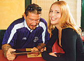 Ahogyan l�tj�tok, mindez nem volt Zolee ellen�re. A n�gy le�nyz� (balr�l jobbra) Vikman Kl�ri (modell), Kov�cs Juli (Eur�pa legokosabb sz�ke n�je), Tissy (�nekesn�) �s Balogh Judit (az EMI Zenei Kft. prom�ci�s menedzsere). V�logatottan j� csapat, Zolee nem is panaszkodott, b�r meg�rkez�sekor �rezhet� volt n�mi k�ts�g, �s a szeme is furcs�n csillogott ennyi sz�ke csajszi l�tt�n.