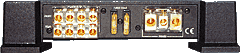 Matt fekete sz�n� el�lapj�nak k�zep�n emelkedik ki a gy�rt� log�ja. A matt fekete mez�ben saj�ts�gos kis fekete rudacsk�k sorozata l�that�. Ebben helyezt�k el az �zemk�sz �llapotot �s az �zemzavart jelz� ledeket is. A k�sz�l�k bekapcsol�s�t k�vet�en az el�lap k�zep�n l�that� gy�rt� felirat alulr�l piros szeg�ly� kiemel�st kap. Impoz�ns, eleg�ns megjelen�s� k�sz�l�k. A t�pfesz�lts�g �s a hangsug�rz�k csatlakoztat�sa tal�n enn�l a t�pusn�l a legszerencs�sebb, ahol a r�gz�t� csavarokt�l eltekintve valamennyi csatlakoz� f�mfel�let �tl�tsz� szigetel� m�anyaggal fedett, ily m�don a r�vidz�r l�trej�tte szinte kiz�rt. A hangsz�r� csatlakoz�k a m�r eml�tett "l�pcs�zetes" kialak�t�s�ak. A nagym�ret� t�pfesz�lts�g-csatlakoztat� csavarok biztos kontaktust eredm�nyeznek. A k�sz�l�k m�sik oldal�n tal�lhat�k a bemeneti csatlakoz�si pontok, a nagyszint� bemeneti csatlakoztat�st a t�bbi t�pust�l elt�r�en nagym�ret� csatlakoz�k�ssorral oldott�k meg. Ezen az oldalon tal�lhat�k a keresztv�lt� kapcsol�i ill. szab�lyz�i, �s a bemenetiszint-szab�lyz�k is.