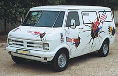 Egy ilyen "j�t�kot" persze, nem lehet egyik pillanatr�l a m�sikra meg�p�teni. A v�laszt�sn�l fontos t�nyez� volt, hogy a karossz�ria �talak�t�sa ne legyen t�lzottan neh�zkes. Az els� �vegeket 2 centi vastag �veglapokra cser�lt�k, az ajt�t �s a tet�t kibetonozt�k. A vezet�f�lk�t karvastags�g� rudak merev�tik, az eredeti m�szerfalat �s l�bteret pedig MDF lapokkal fedt�k le.