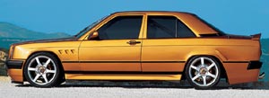 A kateg�ri�ban f� konkurens BMW 3-as sz�ria sokkal nagyobb elismerts�gnek �rvend ebb�l a szemsz�gb�l n�zve. Legyen sz� ak�r a mostani Classe C-r�l vagy a nyolcvanas �vek 190-es�r�l, a kis Mercedesek diszkr�ten h�z�dnak meg a tuningvil�gban.Pedig egy 190-es ritka lehet�s�get k�n�l mindazok sz�m�ra, akik valami �jra v�gynak. Kezdetben el�g, ha csak a gondolattal j�tszunk - k�l�nb�z� tuning�tletekkel felv�rtezve -