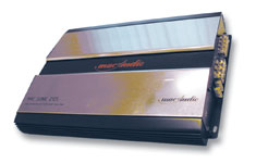 A n�met macAudio c�g er�s�t�je �rban m�r nem a legolcs�bbak k�z� tartozik. Kin�zete eleg�ns, nagyon j�l mutat a k�zep�n m�k�d�skor pirosan vil�g�t� "macAudio" felirat. Teljes�tm�nye 2 x 125 W RMS, 2 ohm stabil, �gy 2 x 200 W-ot ad le, m�g h�dban 4 ohmon 1 x 400 W-ot, 14,4 V fesz�lts�gen m�rve. A k�sz�l�k 10-16 V t�pfesz�lts�g k�z�tt haszn�lhat� t�k�letesen, �s k�t darab 25 A-es biztos�t�k v�di. Magas �s alacsony jelszintr�l egyar�nt m�k�dtethet�. A lesug�rzott m�lytartom�nyba 45 Hz-en avatkozhatunk be, 0-6 dB fokozatmentes kiemel�ssel. Alul-, illetve fel�l�tereszt� sz�r�vel, 50 �s 300 Hz k�z�tt illeszthetj�k a t�bbi komponenshez. Hangsz�r�- �s t�pcsatlakoz�i aranyozottak, j�l szerelhet�ek, csupasz k�belv�geket fogadnak.